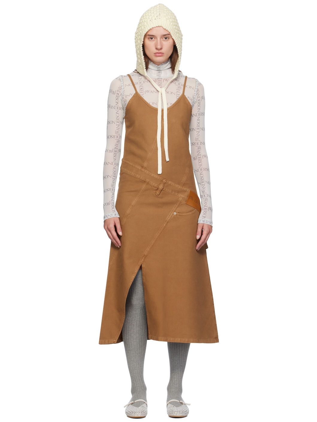 Lightweight garment-dyed cotton twill dress. · Asymmetrical paneled construction · Scoop neck · Belt loops · Leather logo patch and patch pocket at front · Slit at front hem · Concealed zip closure at side seam · Adjustable spaghetti straps · Patch pockets and hammer loop at back · Logo embroidered at pocket · Unlined Supplier color: Caramel 100% cotton. Made in Portugal 242477F055001