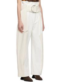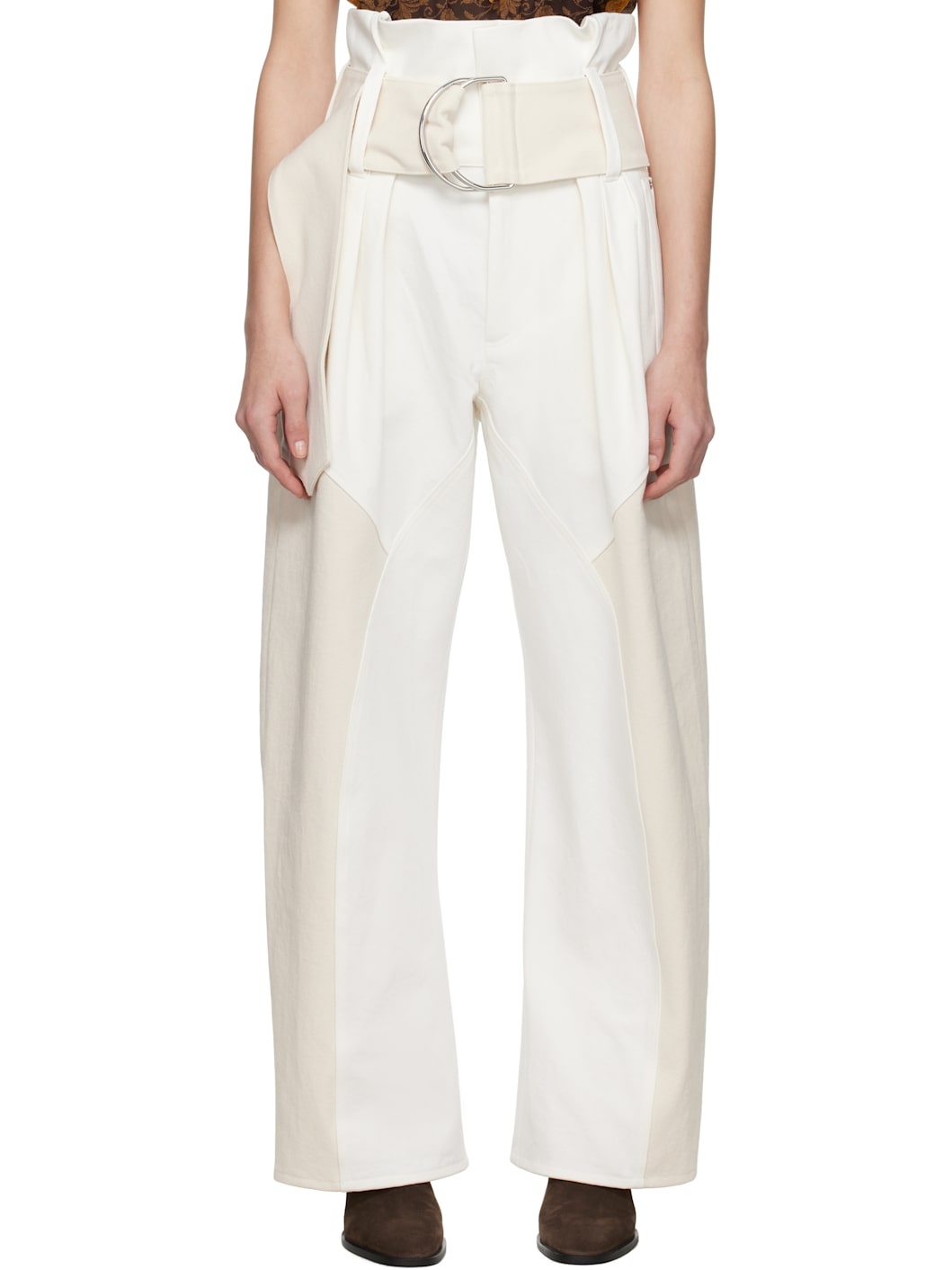 Belted pleated paneled two-tone cotton-poplin wide-leg pants Off-white