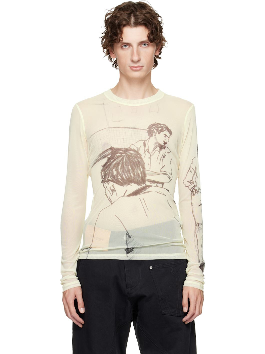 Sheer stretch mesh T-shirt. · Graphics printed throughout · Crewneck · Logo printed at back collar Supplier color: Off-white 95% polyester, 5% elastane. Made in Portugal 252477M213009
