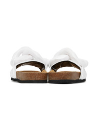 Buffed calfskin slip-on sandals in white. · Open round toe · Curb chain detailing at vamp · Molded footbed · Cork midsole · Crepe rubber outsole Supplier color: White Upper: calfskin. Sole: rubber. Made in Italy 231477F124006