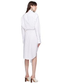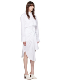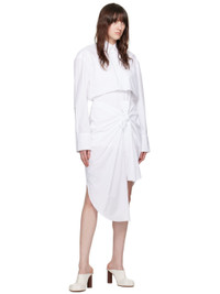 Cotton poplin dress. Scalloped edges at integrated pointelle knit cotton slip-style underlay. · Layered construction · Spread collar · Button closure · Patch pocket · Knotted detailing and gathering at front · Asymmetrical hem · Concealed zip closure at side seam · Two-button barrel cuffs · Logo embroidered at back collar · Twin pleats at back yoke · Pleats at back waist Supplier color: White 100% cotton. Made in Bulgaria 241477F052005