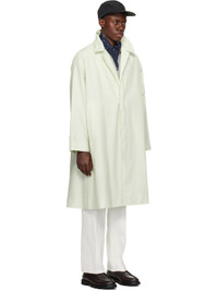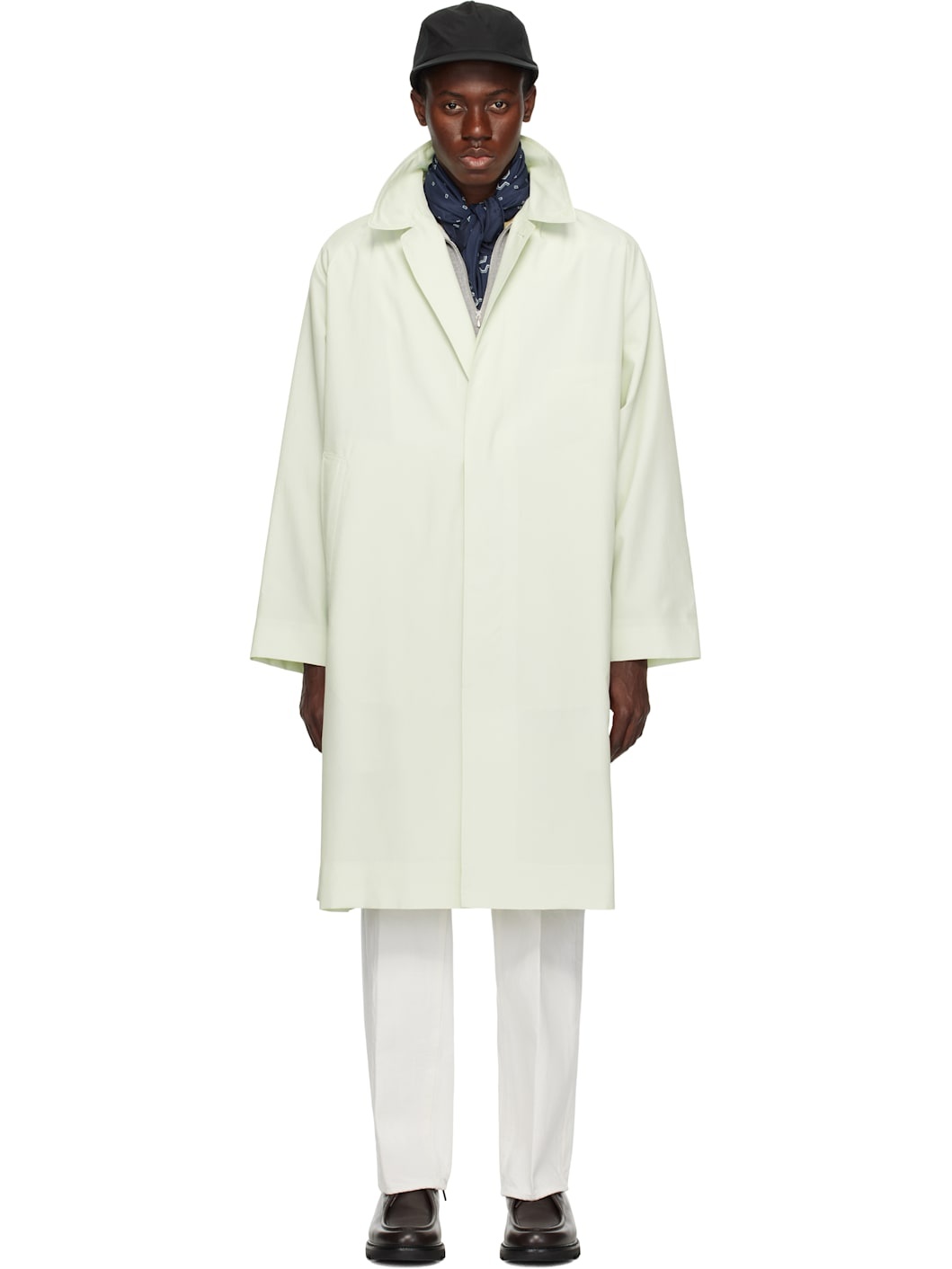 Lightweight and water-repellent silk- and polyester-blend taffeta coat. · Button fastening at spread collar · Button closure · Welt pockets · Raglan sleeves · Adjustable button tab at cuffs · Central vent with button fastening at back hem · Welt pockets at interior · Full cupro satin lining Supplier color: Whisper green Body: 55% silk, 45% polyester. Lining: 100% cupro. Made in Japan 251194M176000