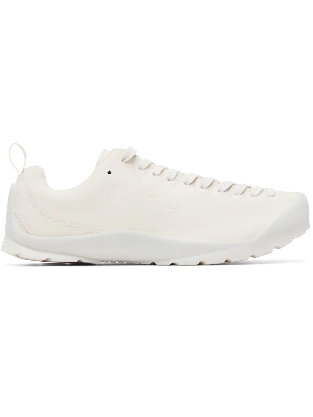 Low-top LWG-certified buffed nappa leather sneakers. · Anti-odor · KEEN.PROTECT rubber cap toe · Lace-up closure · Logo embossed at tongue and outer side · Padded collar · Pull-loop at heel tab · Removable foam insole · Treaded rubber sole · Includes alternate laces in beige Supplier color: Atmosphere birch Upper: leather. Sole: rubber. Made in Cambodia 261168M237030