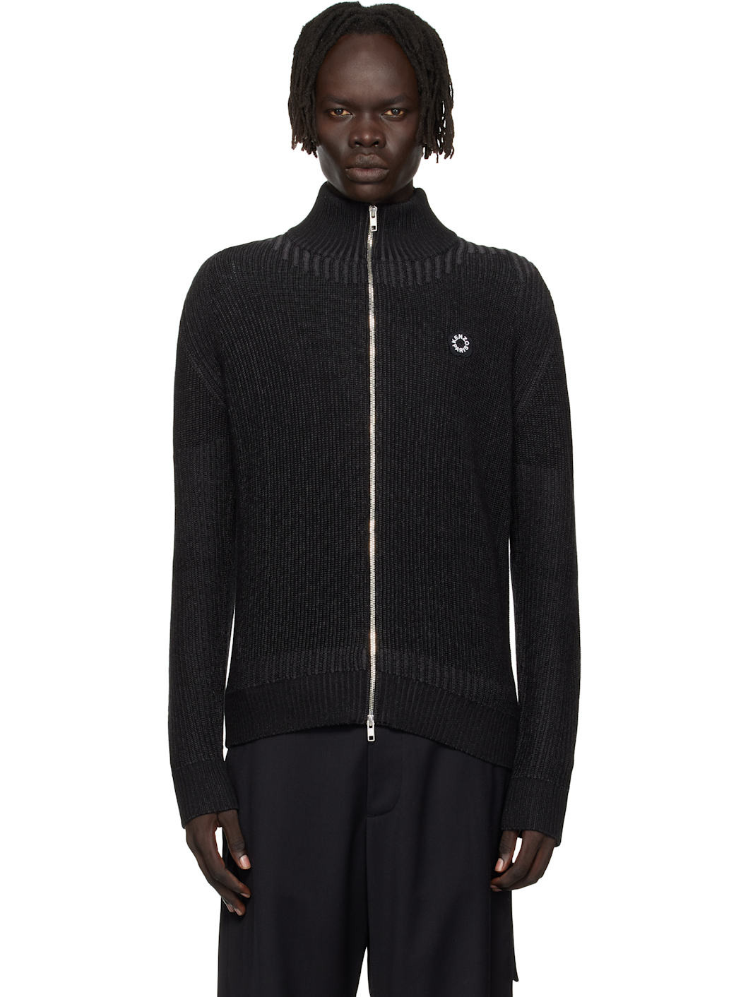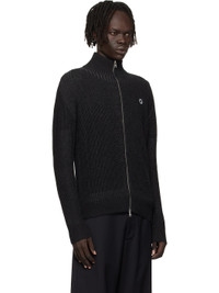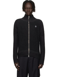 Rib-knit cotton-blend cardigan. · Stand collar · Two-way zip closure · Embroidered logo patch at chest Supplier color: Black 74% cotton, 26% wool. Made in Italy 252387M200000