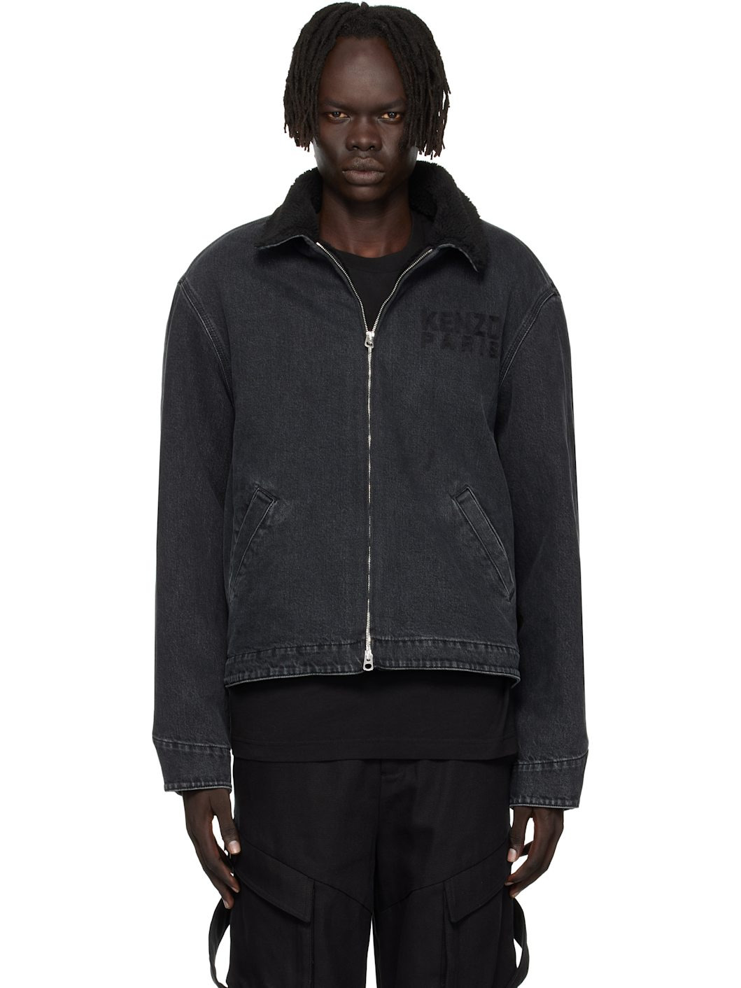 Stretch denim jacket. · Fading throughout · Sherpa fleece trim at spread collar · Two-way zip closure · Logo embroidered at chest · Welt pockets at front · Adjustable press-stud barrel cuffs · Logo graphic embroidered at back · Adjustable press-stud tabs at back hem · Patch pocket at interior · Full sherpa fleece lining Supplier color: Stone bleached black Body: 99% cotton, 1% elastane. Trim: 100% polyester. Lining: 100% polyester. Made in Tunisia 252387M177001
