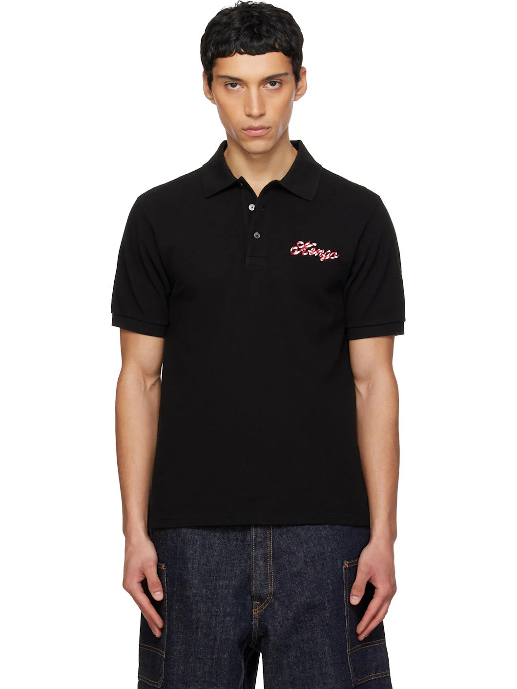 Cotton pique polo. · Rib-knit spread collar and cuffs · Three-button placket · Logo embroidered at chest Part of the KENZO Winter Holidays collection. Supplier color: Black 100% cotton. Made in Portugal 261387M212000