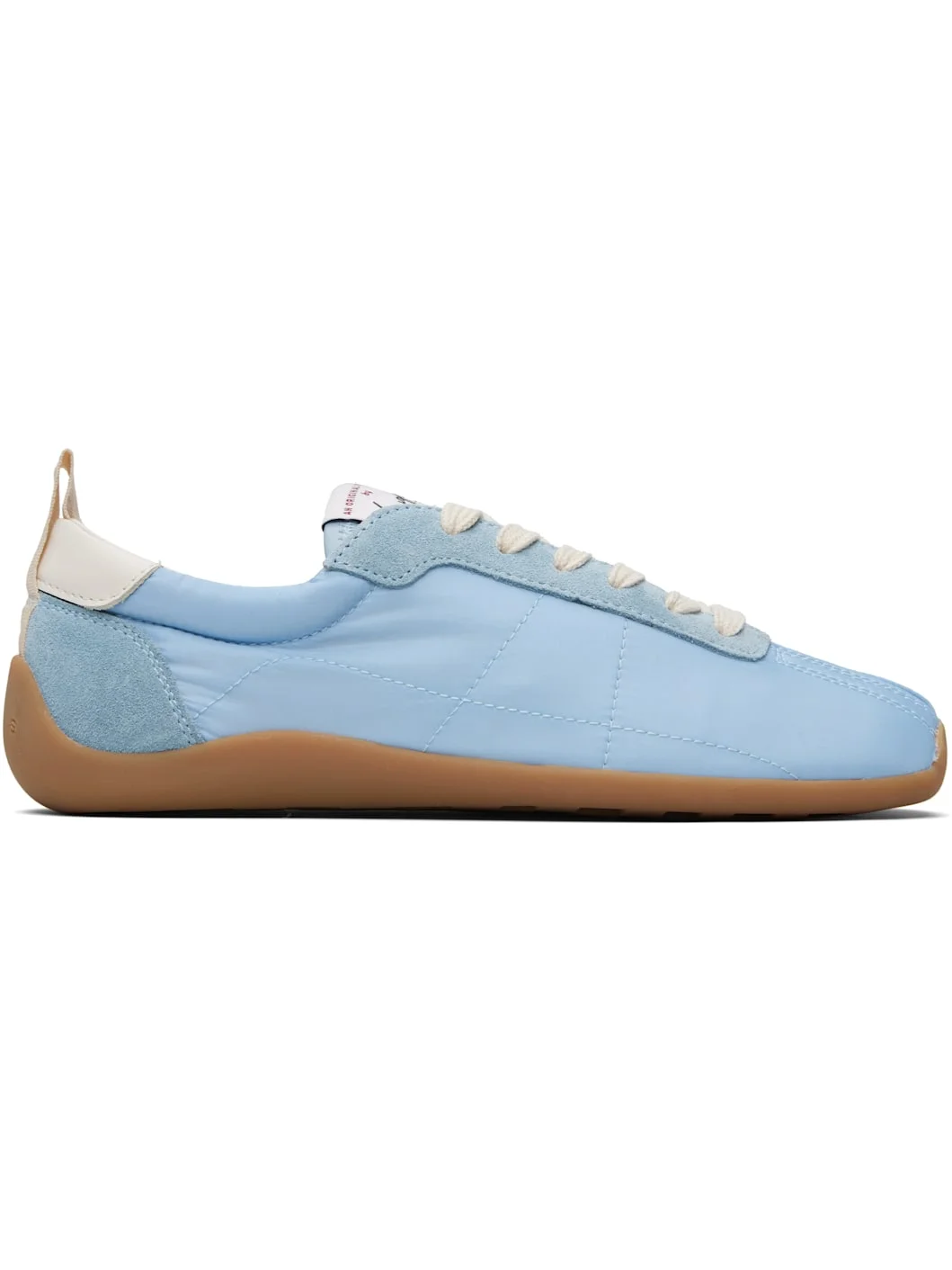 Low-top taffeta sneakers. · Suede and buffed leather trim throughout · Lace-up closure · Logo patch at tongue · Padded collar · Pull-loop at heel collar · Logo embossed at heel · Twill and buffed leather lining · Treaded rubber sole Supplier color: Glacier Upper: textile, leather. Sole: rubber. Made in Portugal 261387F128001
