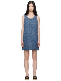 Non-stretch denim dress. Fading and jacquard graphic pattern throughout. · Scoop neck · Zip closure at side seam · Logo patch at back collar · Contrast stitching in tan Supplier color: Medium stone blue