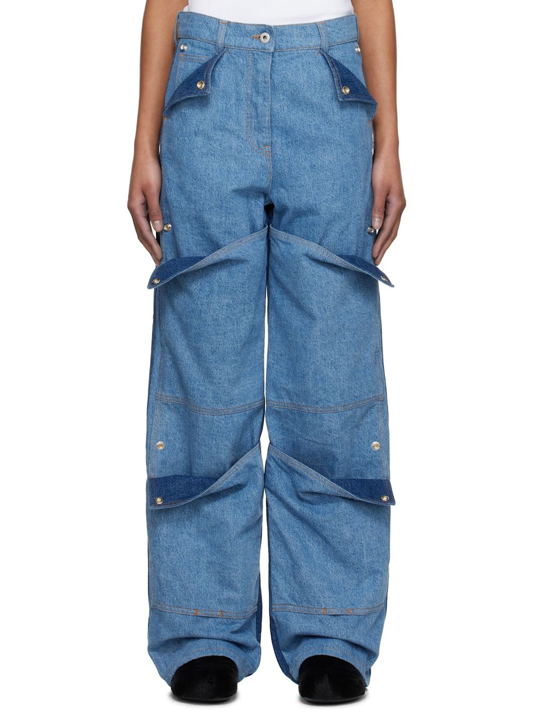 Loose-fit non-stretch denim jeans. Patch pockets and press-stud fastenings throughout. - Paneled construction - Belt loops - Four-pocket styling - Zip fly - Hammer loop at outseam - Logo patch at back waistband - Logo-engraved silver-tone hardware - Contrast stitching in tan Supplier color: Bleached blue denim