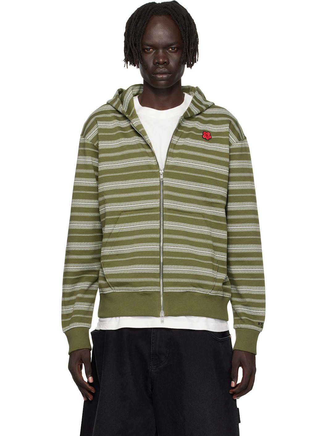 Khaki Kenzo Paris 'Boke Flower' Striped Embroidered Hoodie