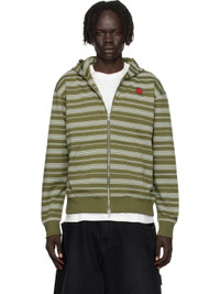 Organic cotton French terry hoodie. · GOTS-certified · Stripes throughout · Two-way zip closure · Embroidered logo graphic patch at chest · Patch pockets at front · Rib-knit hem and cuffs Supplier color: Khaki Body: 100% cotton. Trim: 98% cotton, 2% elastane. Made in Portugal 252387M202001