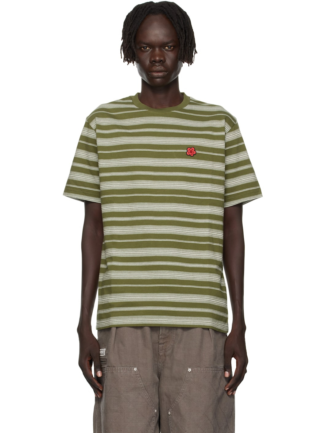 Khaki Kenzo Paris 'Boke Flower' Striped Embroidered T-shirt