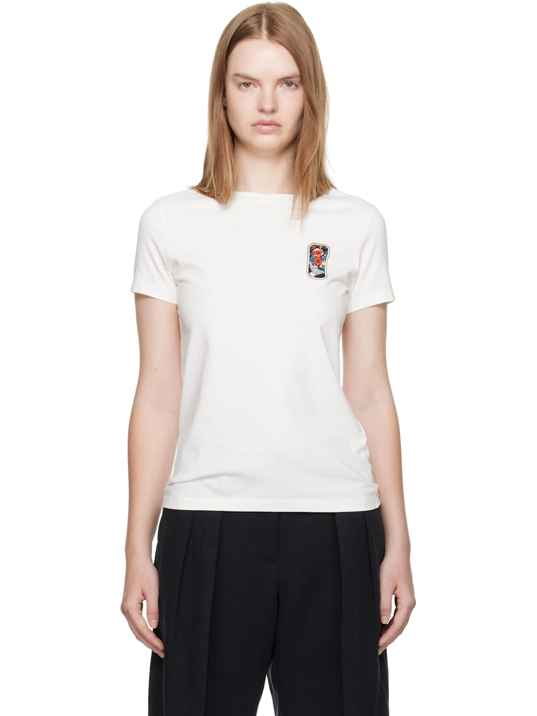 Cotton jersey T-shirt. · Rib-knit crewneck · Graphic printed at chest · Logo and graphic printed at back Supplier color: Off-white 100% cotton. Made in Portugal 252387F110006