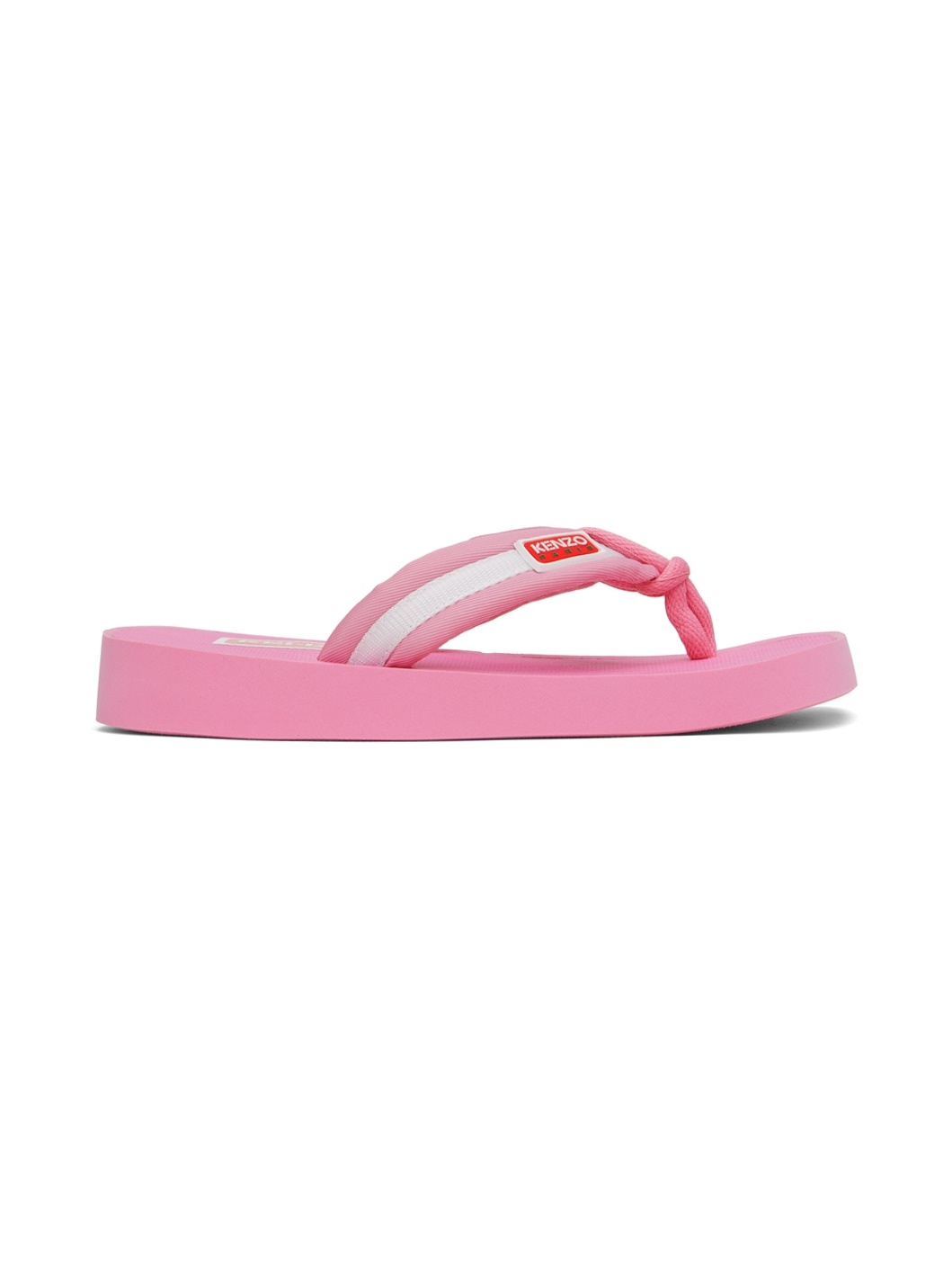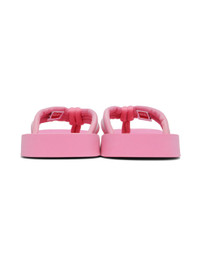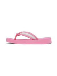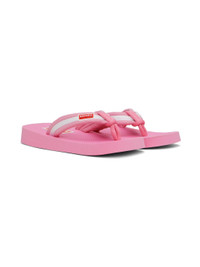 Nylon twill and webbing flip flops in pink. Rubberized logo patch at padded thong-style strap. · Open square toe · Logo bonded at textured molded rubber footbed · Treaded rubber sole Supplier color: Pink Upper: textile. Sole: rubber. Made in Viet Nam 231387F124000