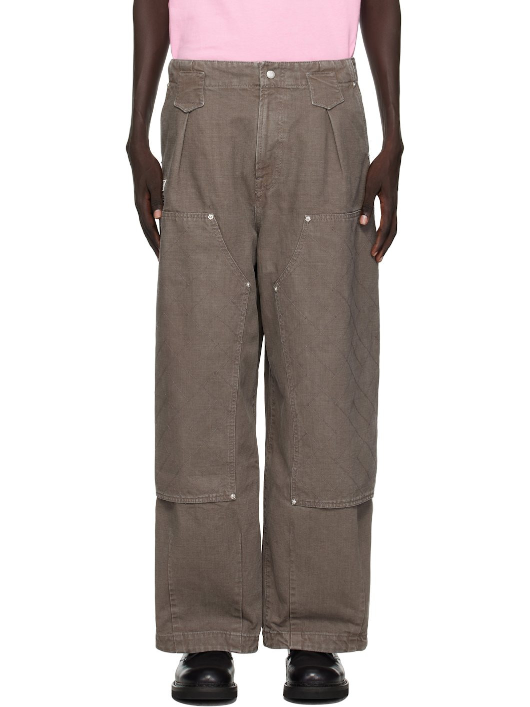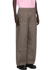 Cotton canvas trousers. · Fading throughout · Belt loops · Four-pocket styling · Zip fly · Logo patch and welt pocket at front · Topstitching at paneled legs · Dart at cuffs Supplier color: Taupe 100% cotton. Made in Tunisia 252387M191000