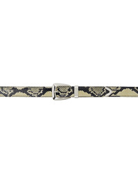 Snake-embossed calfskin belt in beige and black. · Pin-buckle fastening · Silver-tone hardware · W1" Supplier color: Natural Calfskin. Made in Italy 251914F001009