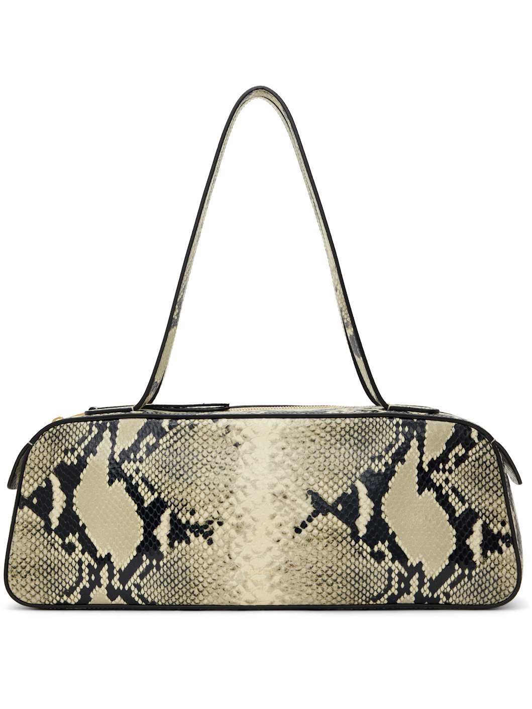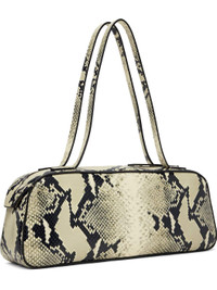 Snake-embossed calfskin shoulder bag in beige and black. · Twin shoulder straps · Logo stamp at face · Zip closure · Buffed leather lining · Logo-engraved gold-tone hardware · H5" x W13.5" x D3" Supplier color: Natural Calfskin. Made in Italy 251914F048007