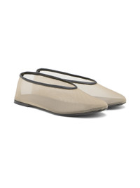 Sheer mesh ballerina flats in beige. · Grained nappa lambskin trim throughout · Logo stamp at padded lambskin footbed · Rubber block heel · Nubuck sole Supplier color: Black/Beige Upper: textile, lambskin. Sole: lambskin, rubber. Made in Italy 242914F118000