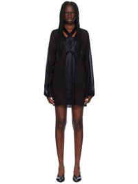 Sheer cotton- and silk-blend georgette dress. Silk satin lace-up fastening at plunging V-neck. Supplier color: Black Body: 78% cotton, 22% silk. Trim: 100% silk. Made in United States 242914F052006