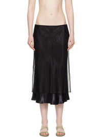 Bias-cut viscose satin midi skirt. Silk organza overlay. · Layered construction · Elasticized waistband Supplier color: Black Body 1: 100% viscose. Body 2: 100% silk. Made in United States 251914F092005