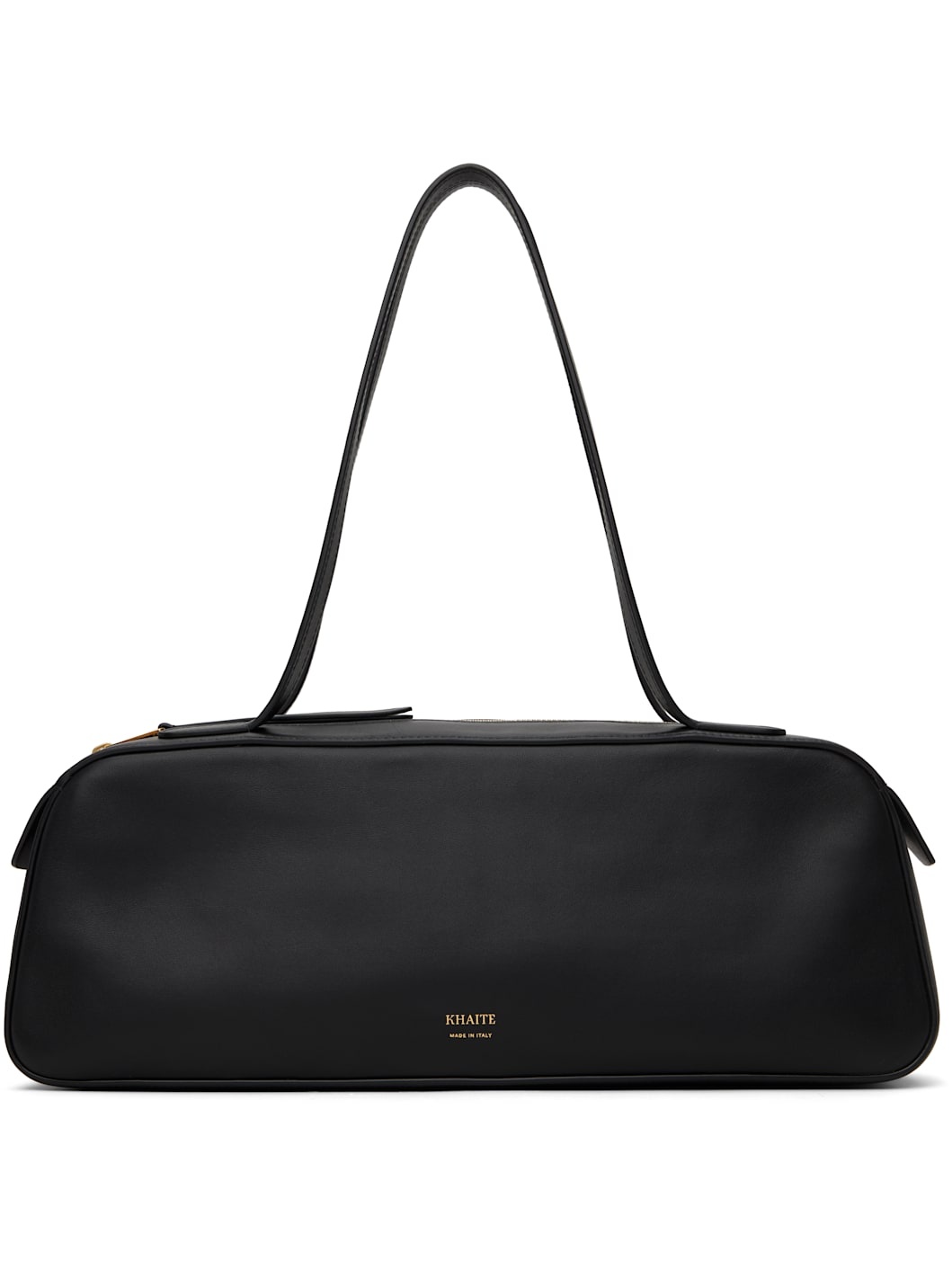 Buffed calfskin shoulder bag in black. · Twin shoulder straps · Logo stamp at face · Zip closure · Suede lining · Logo-engraved gold-tone hardware · H5" x W13.5" x D3" Supplier color: Black Calfskin. Made in Italy 251914F048006
