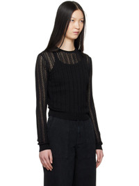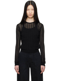 Semi-sheer slim-fit pointelle knit viscose- and cotton-blend sweater. · Rolled edge at rib knit crewneck · Rib knit hem and cuffs Supplier color: Black 52% viscose, 45% cotton, 3% polyamide. Made in Italy 242914F096003