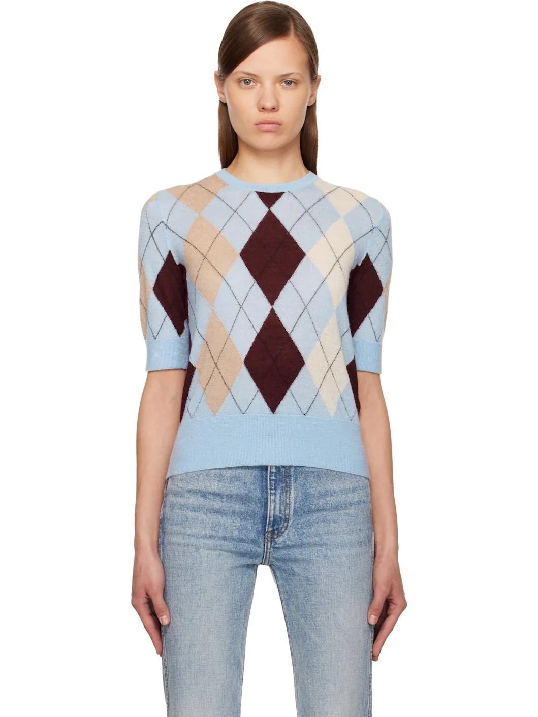 Knit cashmere- and wool-blend sweater. · Intarsia argyle pattern throughout · Rib-knit crewneck, hem, and cuffs Supplier color: Light blue multi 70% cashmere, 30% wool. Made in Italy 252914F096005