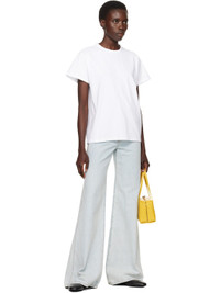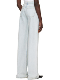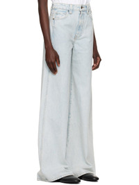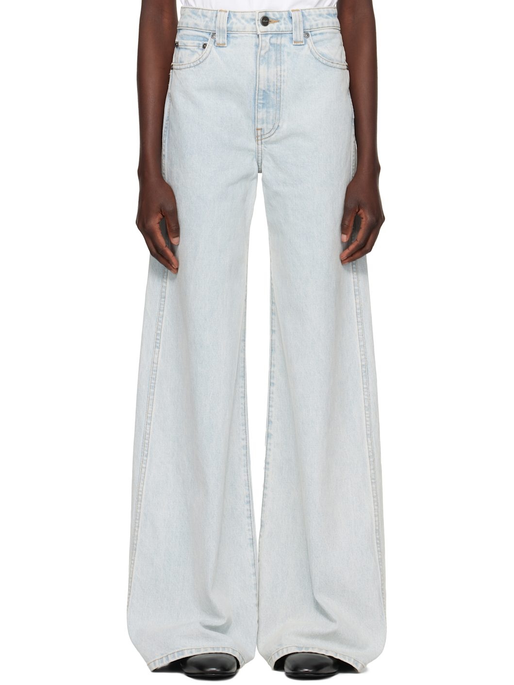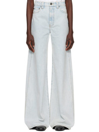 Flared wide-leg stretch denim jeans. Fading, whiskering, and subtle distressing throughout. · High-rise · Belt loops · Five-pocket styling · Button fly · Logo-engraved gunmetal-tone hardware · Contrast stitching in tan Supplier color: Shelburne 98% cotton, 2% polyurethane. Made in United States 252914F069001