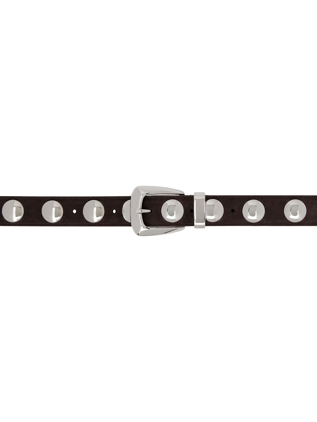 Suede belt in brown. · Studs throughout · Pin-buckle fastening · Silver-tone hardware · W1" Supplier color: Coffee Leather. Made in Italy 251914F001007