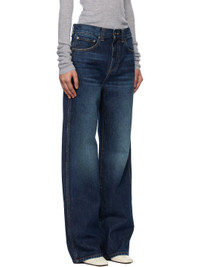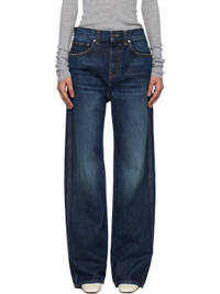 Relaxed-fit non-stretch denim jeans. Fading, whiskering, and subtle distressing throughout. - Low-rise - Belt loops - Five-pocket styling - Button fly - Logo-engraved antiqued silver-tone hardware - Contrast stitching in tan Supplier color: Lansing