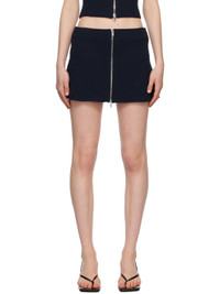 Brushed-back wool crepe skirt. · Low-rise · Two-way zip closure at front · Full silk satin lining Supplier color: Midnight Body: 100% virgin wool. Lining: 100% silk. Made in United States 231914F090002