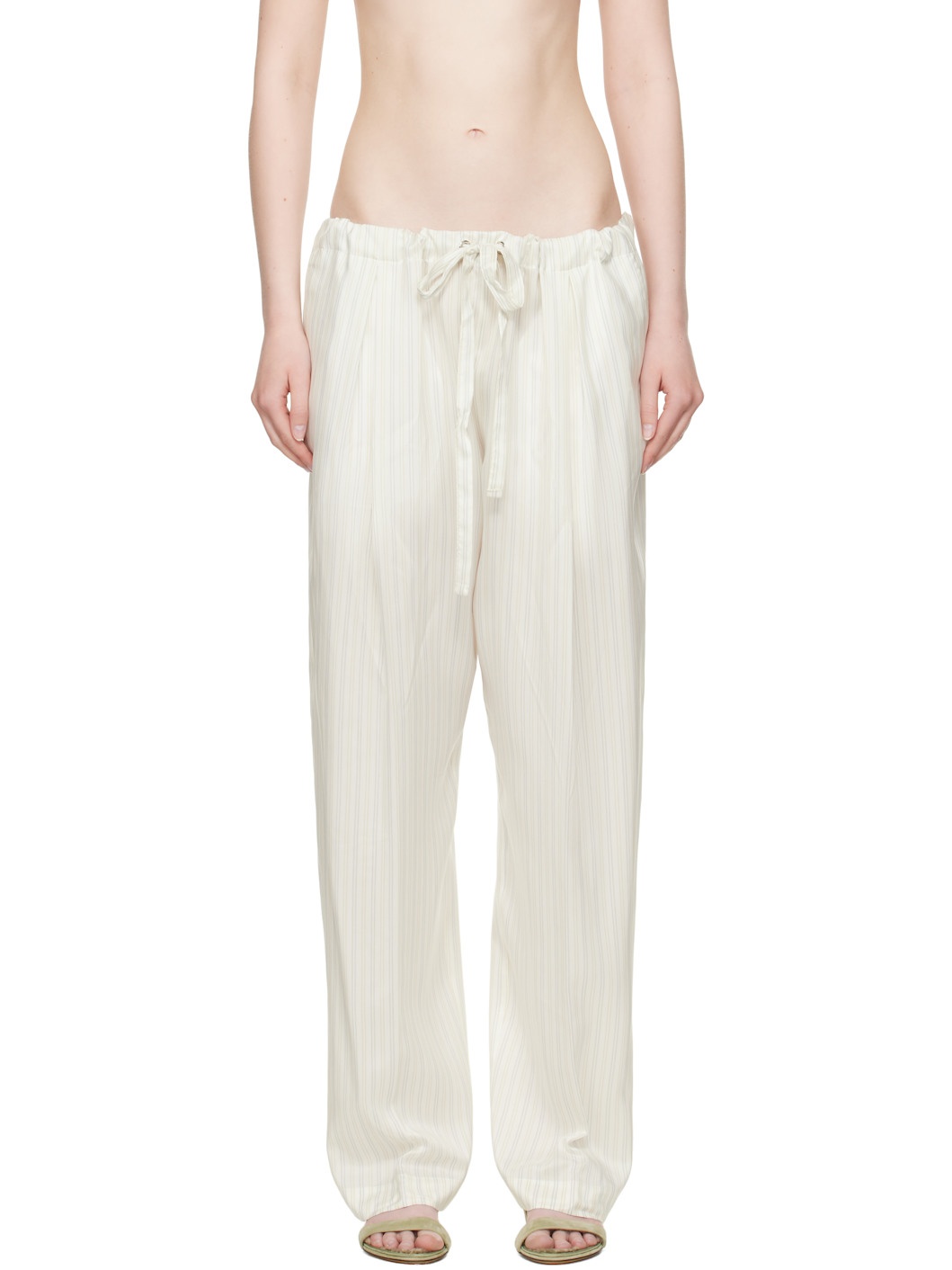 Loose-fit silk-blend poplin trousers. Stripes throughout. · Drawstring at elasticized waistband · Two-pocket styling · Pleats at front Supplier color: Multicolor stripe 98% silk, 2% polyester. Made in United States 252914F087000