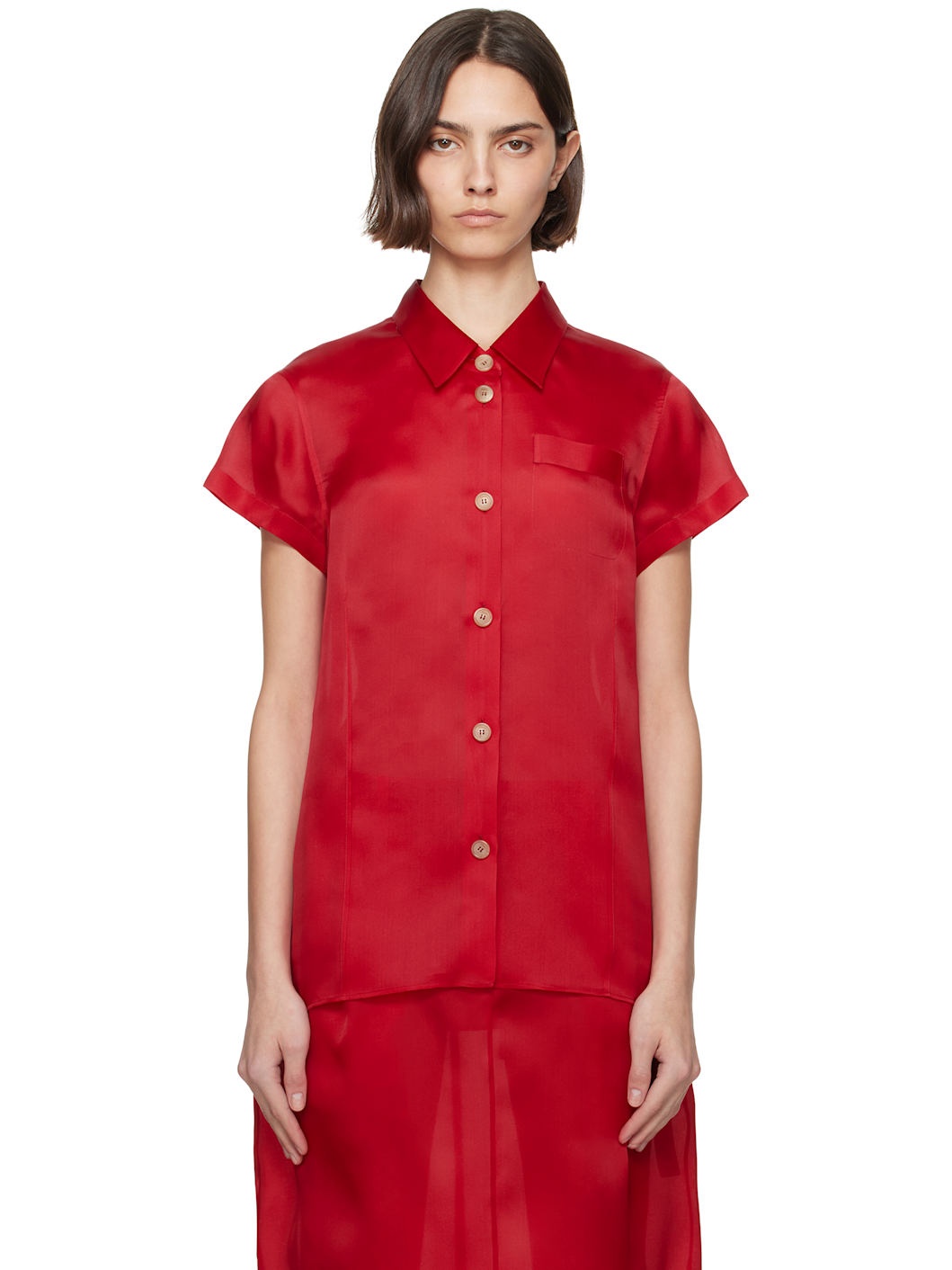 Semi-sheer silk organza shirt. · Spread collar · Button closure · Mock welt pocket at chest · Pintucks at front and back · Vented side seams · Twin pleats at back yoke Supplier color: Raspberry 100% silk. Made in Italy 251914F109000