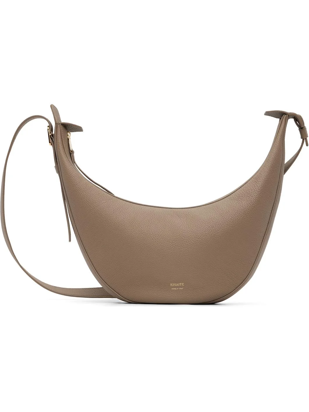 Pebble-grained calfskin shoulder bag. · Adjustable crossbody strap · Logo stamp at face · Zip closure · Suede lining · H6" x W12" x D2" Supplier color: Mokka Pebbled Leather Calfskin. Made in Italy 261914F048009