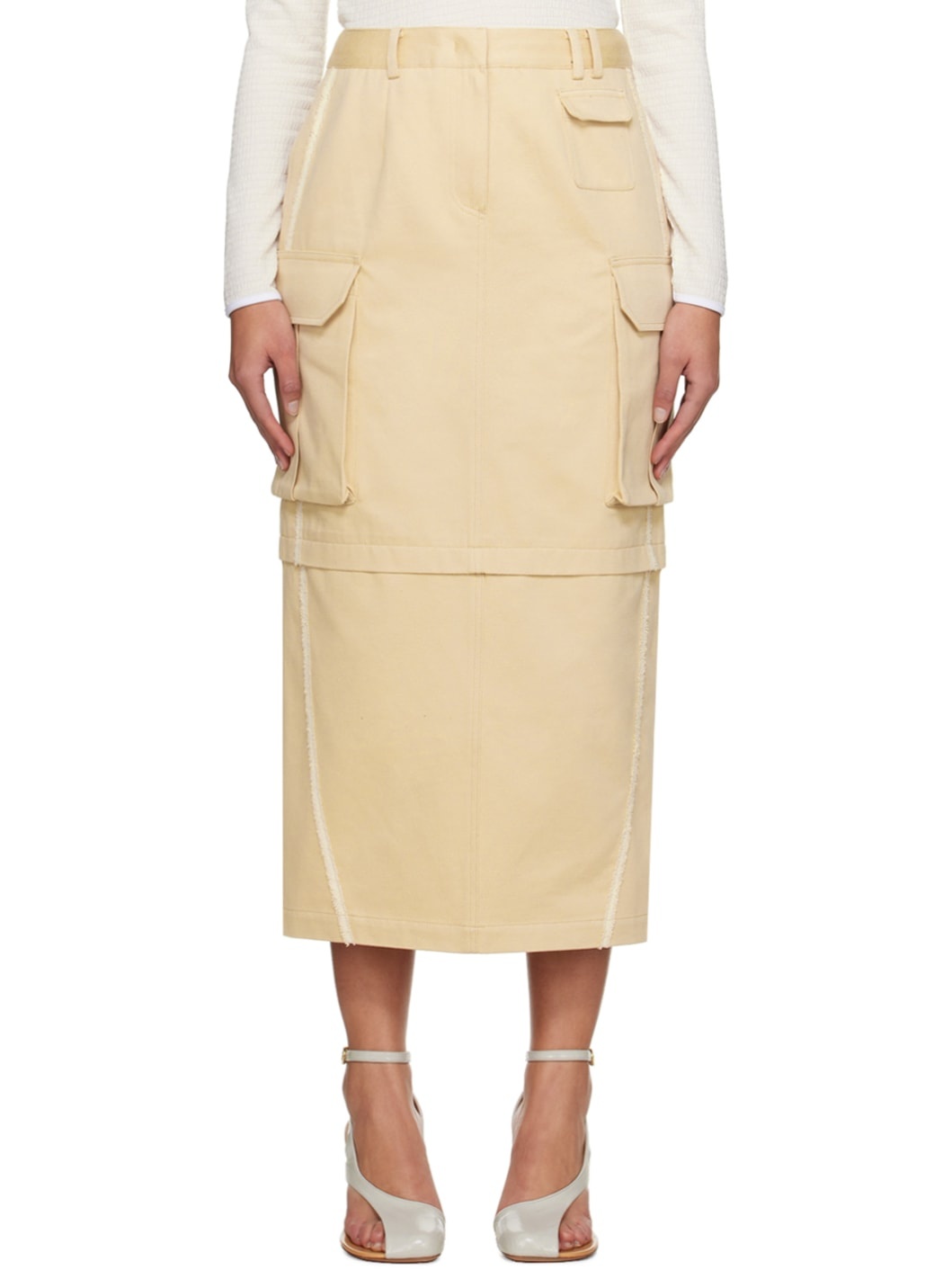 Plain-woven cotton skirt. Frayed trim throughout. · Belt loops · Five-pocket styling · Zip-fly · Cargo pockets at outseams · Central vent at back hem Supplier color: Beige 100% cotton. Made in South Korea 241586F093005