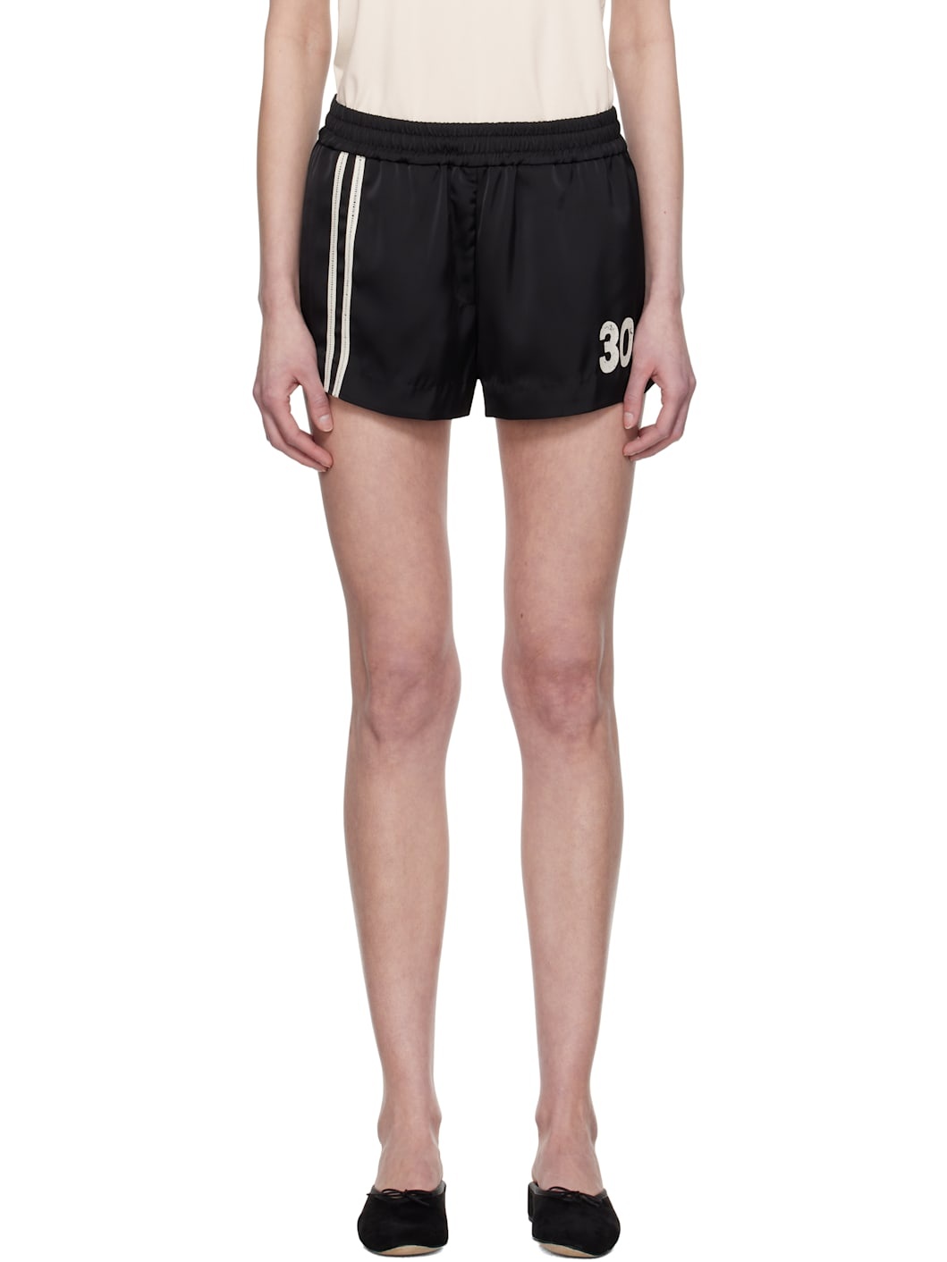 Black Line Satin Shorts