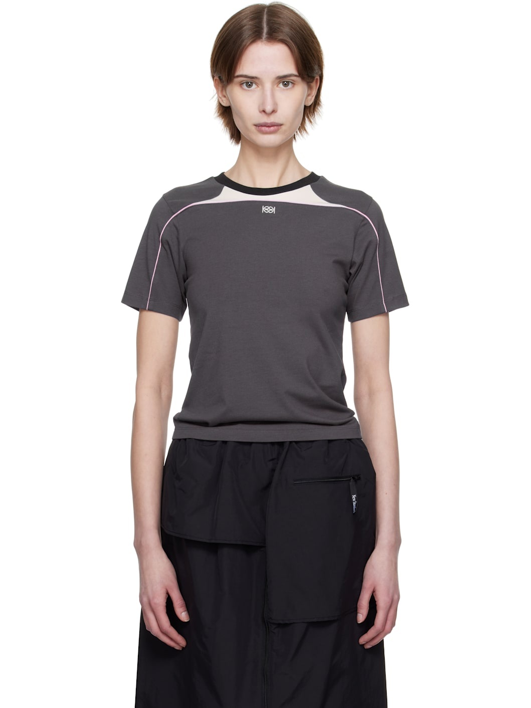 Stretch cotton-blend jersey T-shirt. · Rib-knit crewneck · Logo embroidered at chest · Piping at front and back Supplier color: Charcoal 55% cotton, 36% polyester, 9% spandex. Made in South Korea 251586F110002