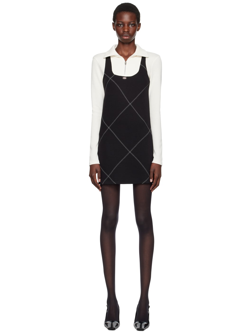Rib knit polyester- and cotton-blend dress. · Paneled construction · Stand collar · Half-zip closure · Logo plaque at chest · Contrast stitching in white Supplier color: Black/Ivory 65% polyester, 35% cotton. Made in South Korea 242586F108003