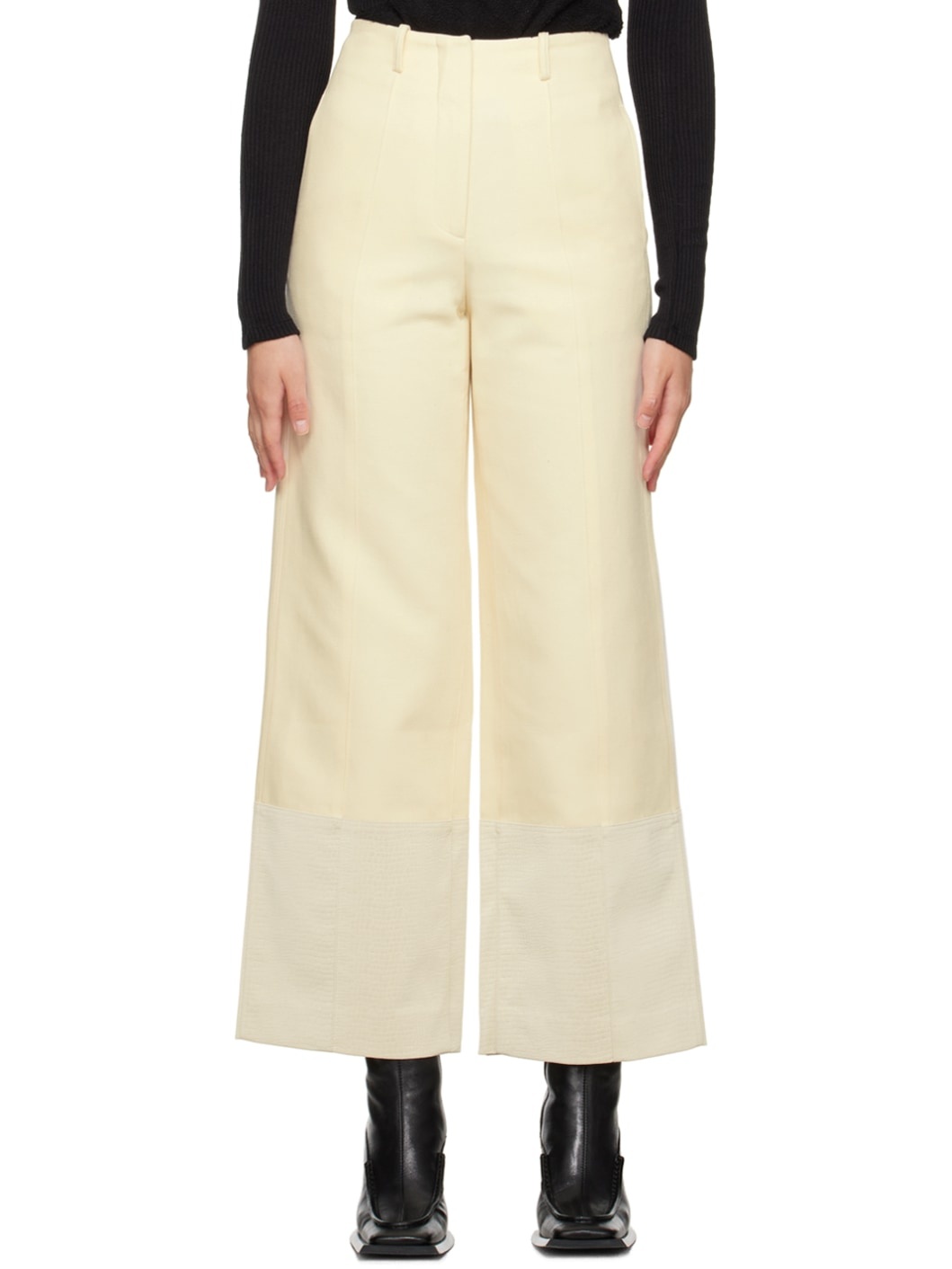 Cotton canvas trousers. · Belt loops · Four-pocket styling · Zip-fly · Croc-embossed faux-leather cuffs Supplier color: Cream Body 1: 100% cotton. Body 2: 50% rayon, 50% polyurethane. Made in South Korea 232586F087004