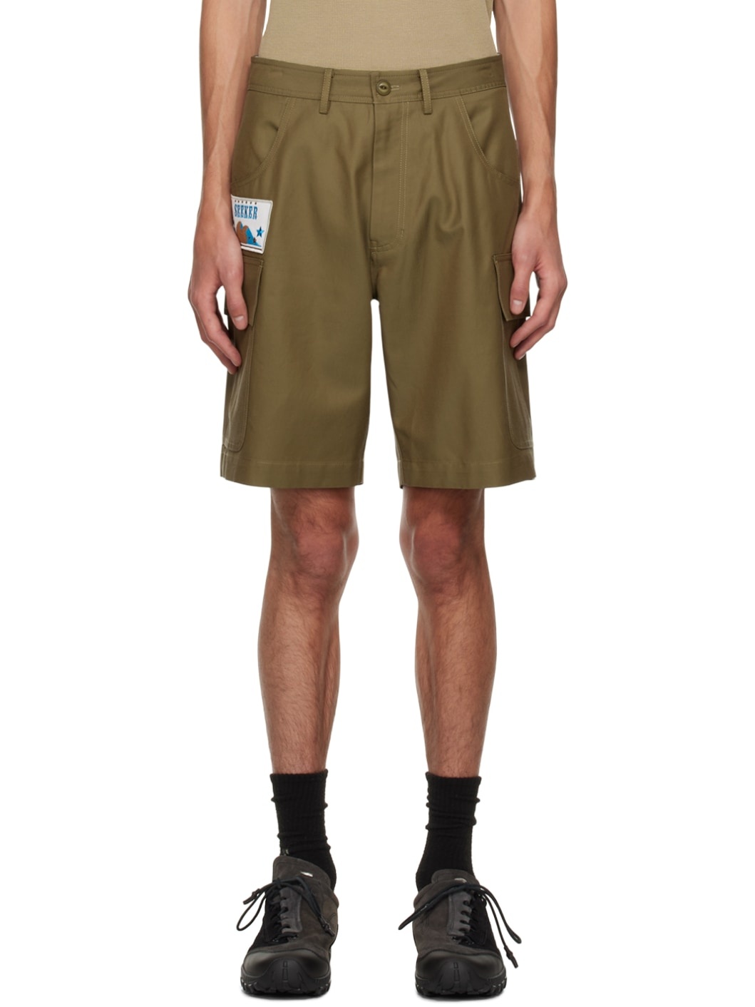Cotton-blend twill shorts. · Belt loops · Four-pocket styling · Zip-fly · Embroidered logo patch at front · Flap pocket at outseams · Button tab at back waistband Available exclusively at SSENSE. Supplier color: Khaki