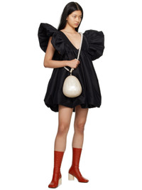 Stretch polyester and nylon-blend taffeta dress. Gathering throughout. · Plunging V-neck · Ruffle trim at armscyes · Zip closure at low back Supplier color: Black 65% polyester, 30% polyamide, 5% elastane. Made in Colombia 231593F052003