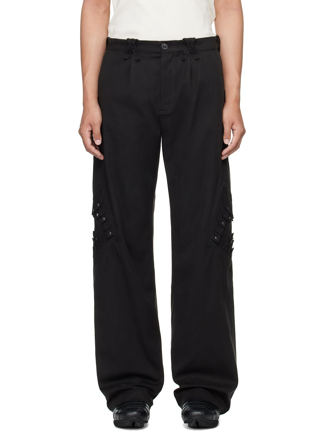 Stretch tencel- and cotton-blend twill trousers. · Belt loops · Four-pocket styling · Zip fly · Pleated panel with rivets at outseams Supplier color: Jet black 63% tencel, 35% cotton, 2% elastane. Made in Bulgaria 252985M191004
