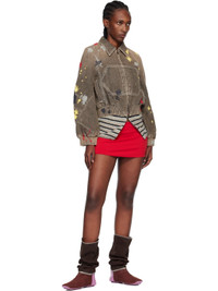 Non-stretch denim jacket. · Fading and hand-painted detailing throughout · Spread collar · Two-way zip closure · Welt pockets at waist · Elasticized hem and cuffs · Darts at raglan sleeves · Welt pocket at interior · Full poplin lining · Contrast stitching in white Supplier color: Washed brown 100% cotton. Made in Japan 252985F060002