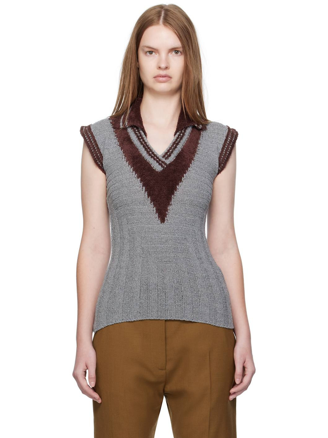 Gray & Brown Quimby Sleeveless Polo