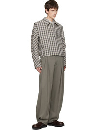 Cotton-blend canvas jacket. · Check pattern, darts, and pleats throughout · Spread collar · Zip closure · Partially elasticized hem · Press-stud vent at cuffs · Welt pocket at interior · Full satin lining Supplier color: Oyster check Body: 97% cotton, 1% linen, 1% polyamide, 1% viscose. Trim: 100% cotton. Lining: 100% viscose. Made in Bulgaria 252985M180008