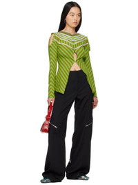 Rib knit stretch cotton top. Stripes throughout. · Paneled construction · Lace trim at V-neck and chest · Cutouts and fishnet trim at front and back · Keyhole at front · Cutout at shoulders · Central vent at front and back Supplier color: Midsommar green stripe Body: 95% cotton, 5% elastane. Trim: 100% polyamide. Made in Bulgaria 241985F107002