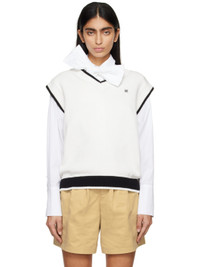 Knit cotton vest. · Striped rib knit V-neck, hem, and armscyes · Logo graphic embroidered at chest · Dropped shoulders · Logo embroidered at back collar Supplier color: White 100% cotton. Made in South Korea 241609F100000