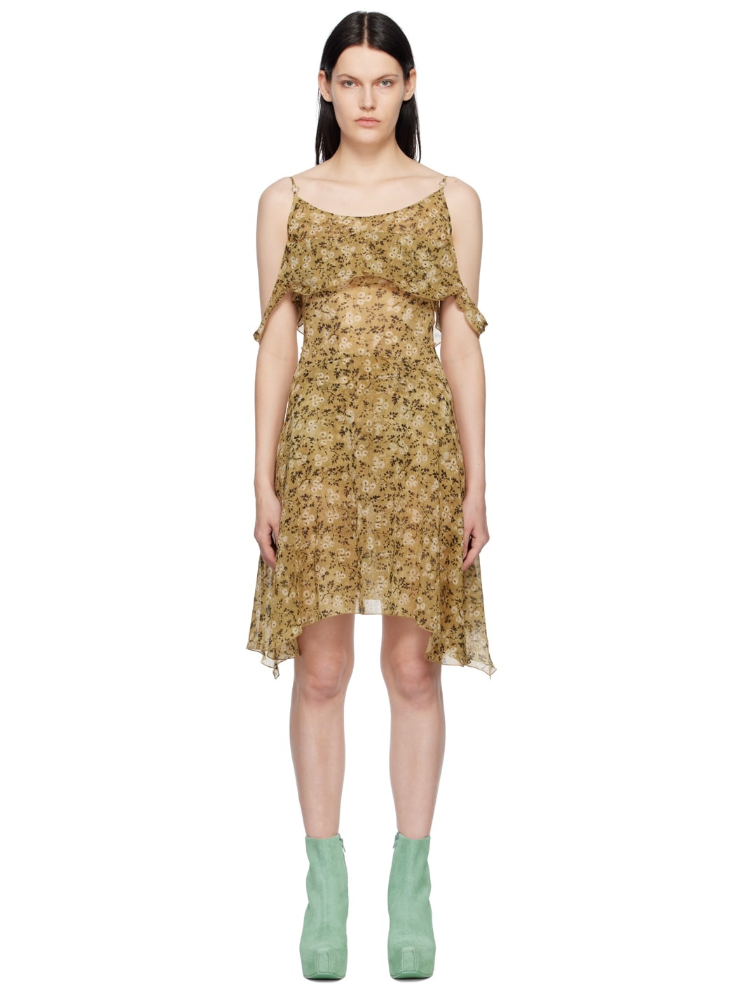 Semi-sheer stretch polyester mesh dress. Floral pattern printed throughout. · Cowl neck · Peplum hem · Fixed and adjustable shoulder straps · Bungee-style drawstring at back · Integrated bra-style underlay Supplier color: Wall flower 84% polyester, 16% elastane. Made in Italy 231148F054009