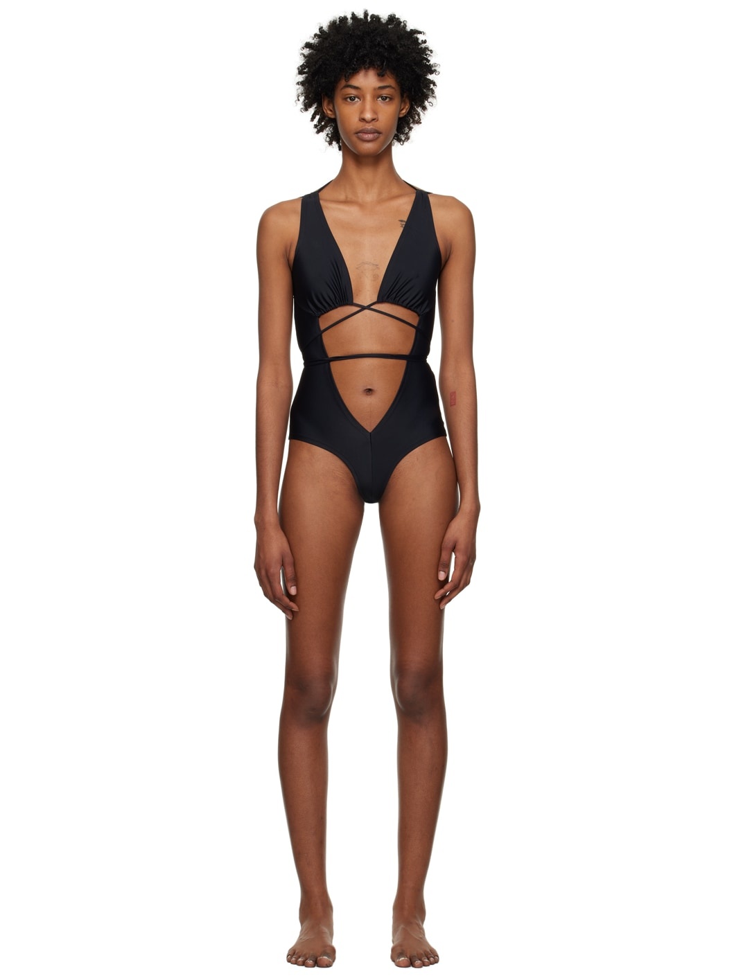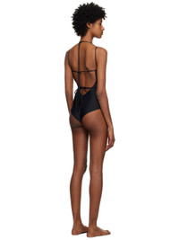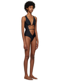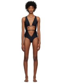 Stretch recycled nylon one-piece swimsuit. · Plunging V-neck · Wraparound self-tie fastening at front · Cut out at front · Cord-lock drawstring at open back · Unlined Supplier color: Black 78% recycled nylon, 22% elastane. Made in United Kingdom 231148F103002