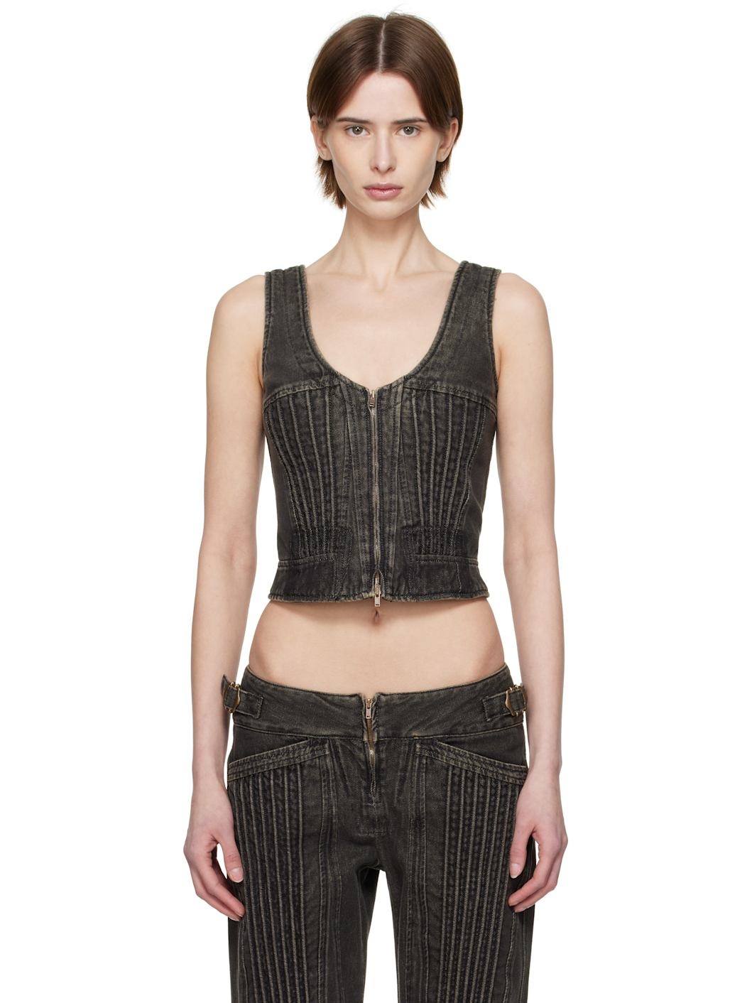 Non-stretch denim corset. Fading throughout. · Plunging scoop neck · Two-way zip closure and pinched seams at front · Lace-up detailing at back Supplier color: Black Body: 100% cotton. Lining: 65% polyester, 35% cotton. Made in Italy 251148F111001